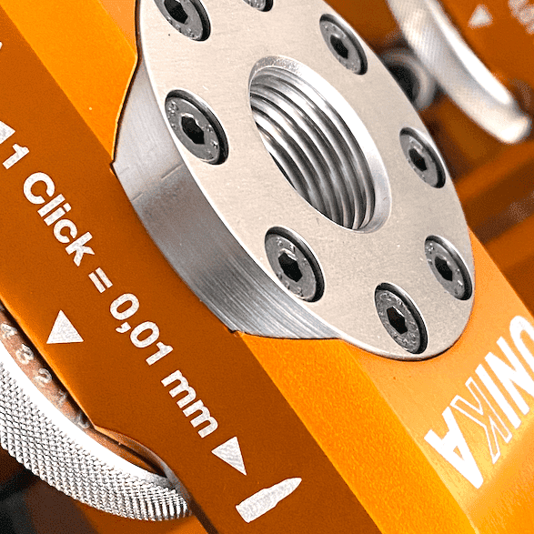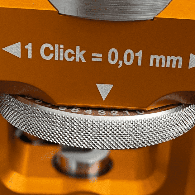 La ghiera MICROMETRICA garantisce una precisa regolazione della corsa del pistone, con step di 0,01 mm